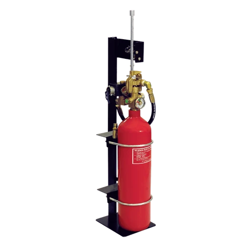 The pilot cylinder provides nitrogen gas at the pressure of 550 psi. The solenoid valve opens upon the supply of 24VDC, allowing gas to flow from the cylinder onto the manual / pneumatic actuator fitted to the pilot valve. The pilot valve then opens, releasing gas onto the C02 pneumatic valve. The pilot cylinder may also be operated manually, either locally at the pilot cylinder or remotely by pull box.